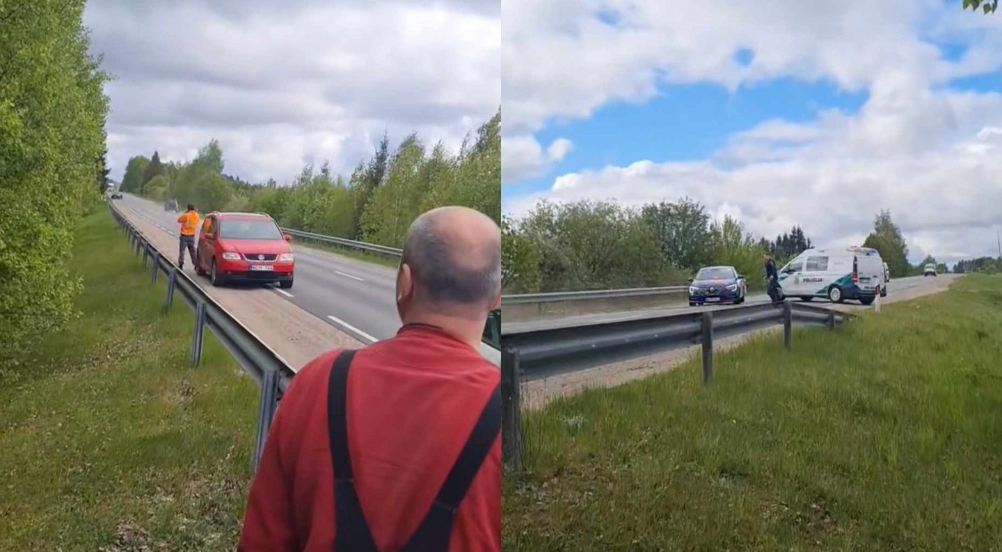 Netrukus socialiniuose tinkluose imta dalintis įvykių vietoje užfiksuotu vaizdo įrašu, kuriame matyti, kaip pareigūnai ruošiasi panaudoti priverstinio stabdymo priemonę, vadinamą „ežiu“.