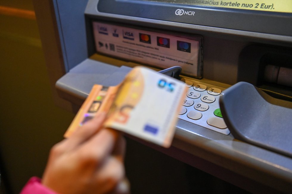Jeigu žmogus norės papildomai išsiimti dar 100 eurų, jis turės sumokėti 2 eurus.