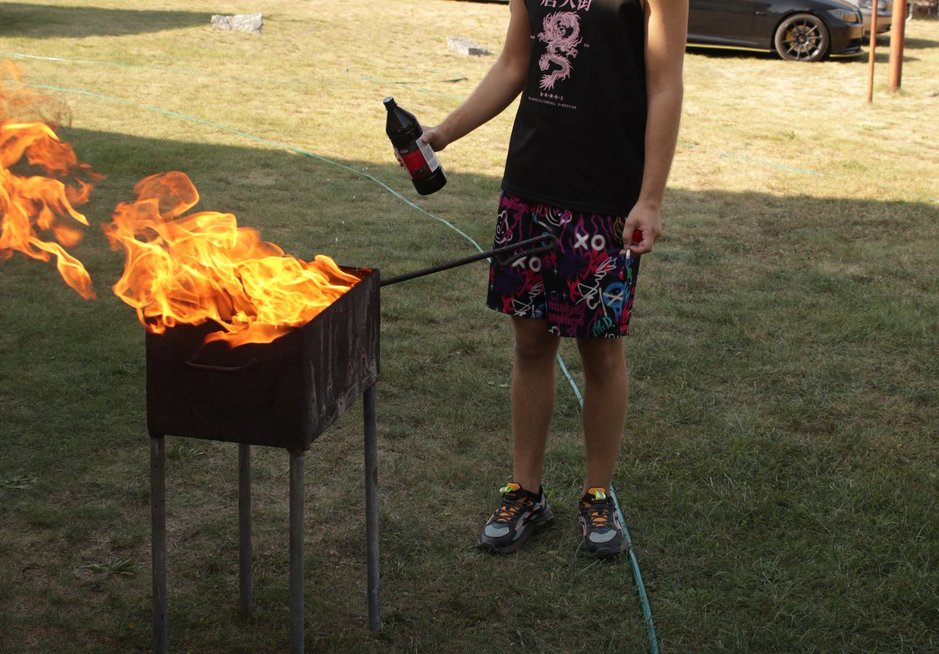Šašlykinė su benzinu, degantys pastatai ir vijokliai