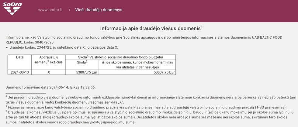Vakar, kai restoranas atsiėmė prestižinį apdovanojimą, jį valdanti mažoji bendrija „Sodrai“ buvo skolinga 64,5 euro.