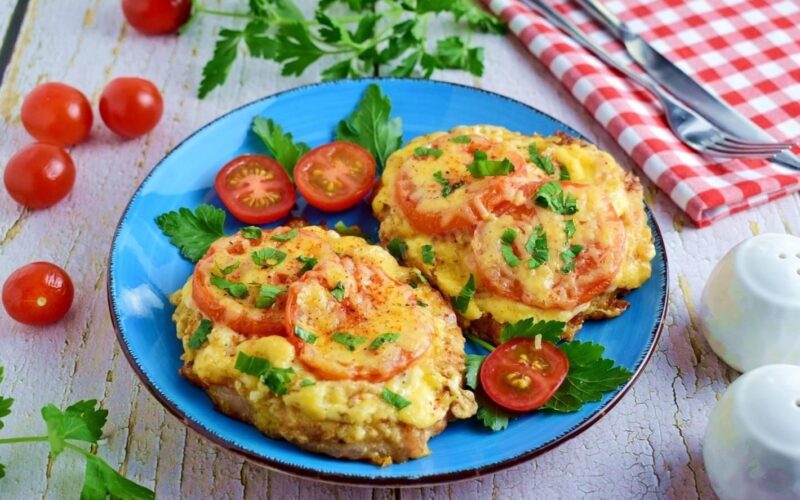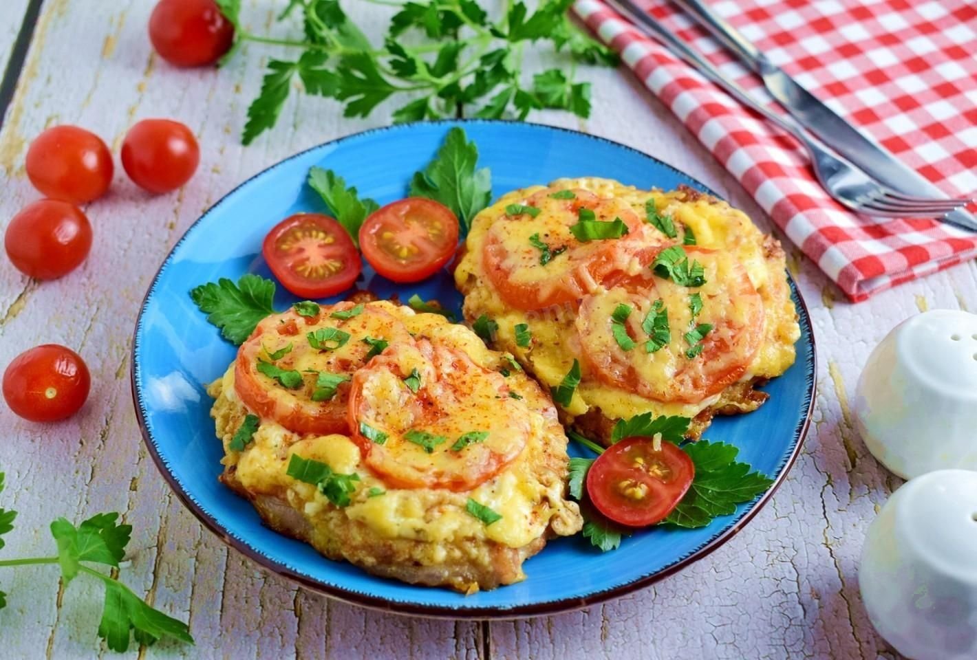 Jei pageidaujate, galite ant viršaus uždėti plonų pomidorų griežinėlių ir tarkuoto kietojo sūrio ir laikyti po uždarytu dangčiu, kol sūris išsilydys. Gausis kažkas panašaus į prancūziško stiliaus kotletą.
