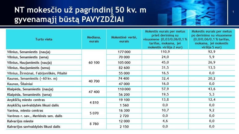 Paprastai kalbant, naujo mokesčio dydis priklausys nuo to, kur konkretus NT objektas yra, kiek vertinami toje pačioje savivaldybėje esantys objektai ir kiek įvertintas konkretus namas ar butas.