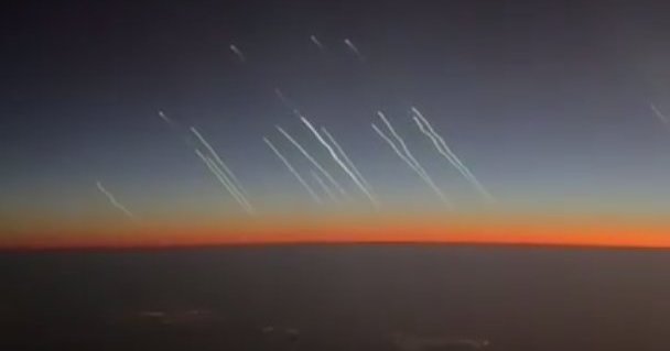 Lėktuvo, skridusio virš Saudo Arabijos, keleiviai nufilmavo momentą, kai iš Irano į Izraelio pusę buvo paleistos balistinės raketos.