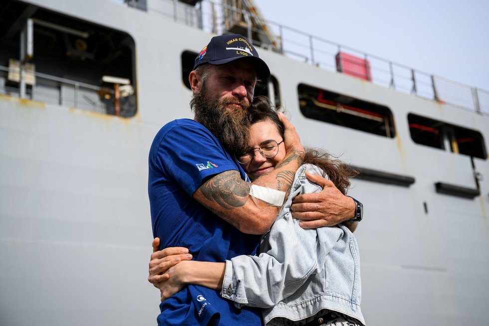 Prie Australijos krantų su taifūnu susigrūmusį ir Australijos karinių pajėgų išgelbėtą keliautoją Aurimą Mockų krante, Sidnėjuje, pasitiko lietuvių bendruomenė ir į Australiją atskridusi žmona. Aurimas nuirklavo tūkstančius kilometrų.