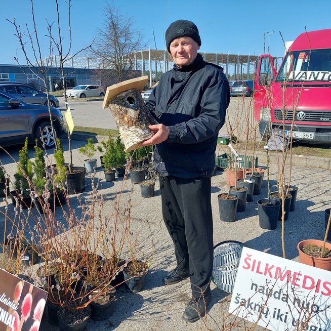 Keletą dienų Jazminų turguje gaudė pirkėjus medelių, uogakrūmių ir inkilų pardavėjas alytiškis Algimantas Vaitkus. Jis už 2–3 metų obelaites prašė 18, sausmedžio sodinuką – 12, svarainių krūmelį – 15 eurų.
