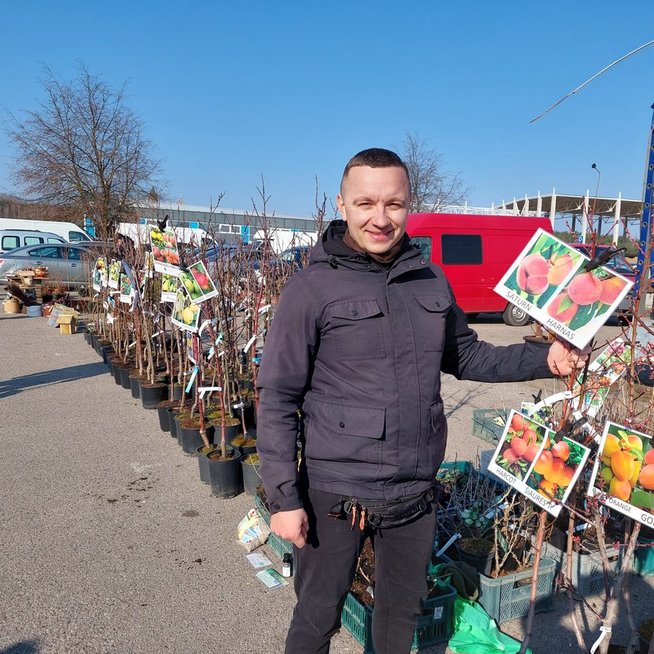 Šeštadienį Algimantas prišaukė didžiuosius sodininkus – užklojo medeliais prie Jazminų turgaus visą aikštelę. Vienas jų – Marijampolės savivaldybės Gilminto Kuodžio medelyno vadybininkas Marius.